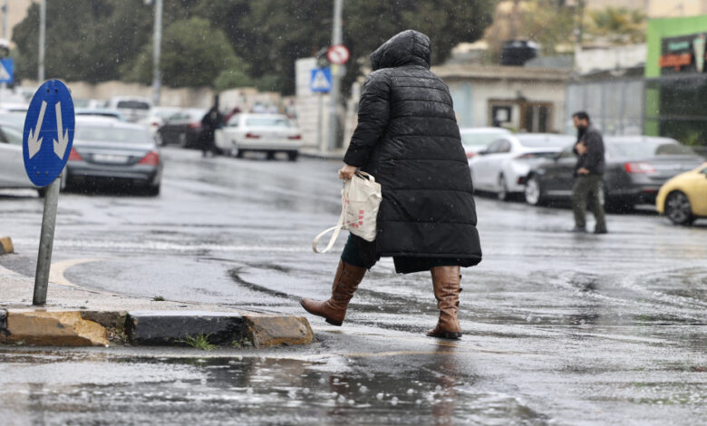 وتبقى المملكة الخميس، تحت تأثير الكتلة الهوائية الباردة والرطبة، وتنخفض درجات الحرارة بشكل ملموس، ويكون الطقس باردًا وغائمًا وماطرًا في أغلب المناطق، ويتوقع ان تكون الامطار غزيرة أحياناً في بعض المناطق مصحوبة بالرعد وهطول البرد، ما يؤدي الى تشكل السيول وارتفاع منسوب المياه في الاودية والمناطق المنخفضة في العديد من المناطق بما فيها العقبة والبحر الميت.