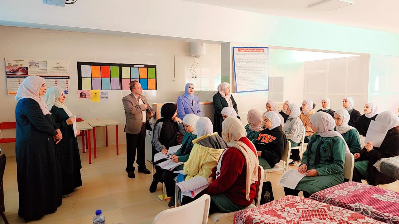 وتفقدت البكار مشغل BTEC لتخصص الشعر والجمال،وتأكدت من توفير كافة المستلزمات الضرورية للمشغل ، والتقت بالطالبات داخل الغرفة الصفية، حيث دار حوارا موسعا مع الطالبات استمعت خلاله للعديد من الملاحظات والافكار الجديدة،و قدمت القناعات اللازمة لتعزيز اختيارهن لمسار التعليم المهني والتقني،كما اطلعت على ما تم إنجازه من المنهاج الدراسي، موصية ضابط ارتباط الجودة والمعلمات، بضرورة متابعة حل الواجبات اليومية مع الطالبات، ومتابعة التسليم بالوقت المناسب وضمن الخطة المقررة.