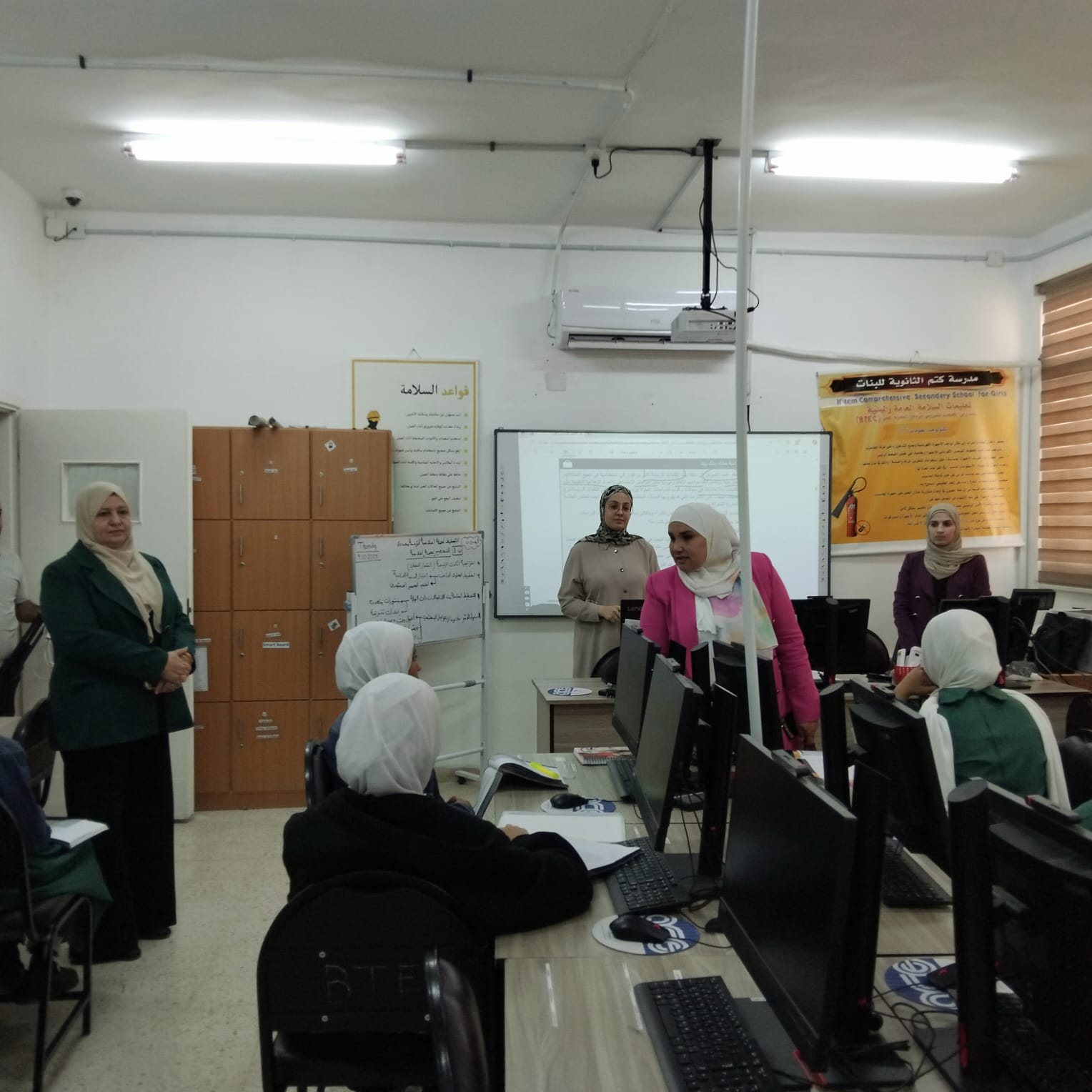 وزارت البكار مختبرات وصفوف ال BTEC ، وقدمت التوجيه والإرشاد اللازم بمدى أهمية التعليم المهني والتقني، ولتعزيز القناعات لدى طالبات تكنولوجيا المعلومات، باعتبار التخصصات التقنية التي اختاروها سلاحا قويا تمكنهم من اكتساب المهارات الفنية والتقنية وتأمين وظائف المستقبل،مشددة على ضابط الارتباط والمعلمات بضرورة متابعة حل الواجبات اليومية مع الطالبات وتقديمها ضمن الخطة المقررة والوقت المطلوب ، وتقديم كافة أشكال الدعم والاسناد اللازم لهم .