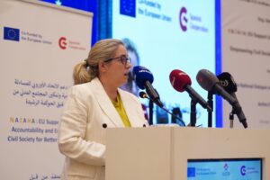 وقالت نائبة رئيس البعثة في سفارة أسبانيا إستيباليز إن إسبانيا تتمتع بتقليد راسخ في العمل مع منظمات المجتمع المدني وتدعم دورها في بناء سيادة القانون، وبينت إن التزامنا بالمجتمع المدني في تعزيز النزاهة والشفافية والمساءلة يشكّل جوهر تعاوننا الدولي في مجال التنمية، وفي هذا الإطار، يجسّد مشروع “نزاهة” هذا الالتزام ويعززه، وأكدت على أهمية الموضوعات المطروحة وتوقيت هذه الحوارات الوطنية، فهي لا تبرز فقط إنجازات مشروع “نزاهة”، بل تسلط الضوء أيضاً على قدرة المشروع على التكيّف ومساهماته الكبيرة في تحقيق أهدافه، على الرغم من التحديات والظروف غير المستقرة التي يواجهها القطاع والدولة والمنطقة.