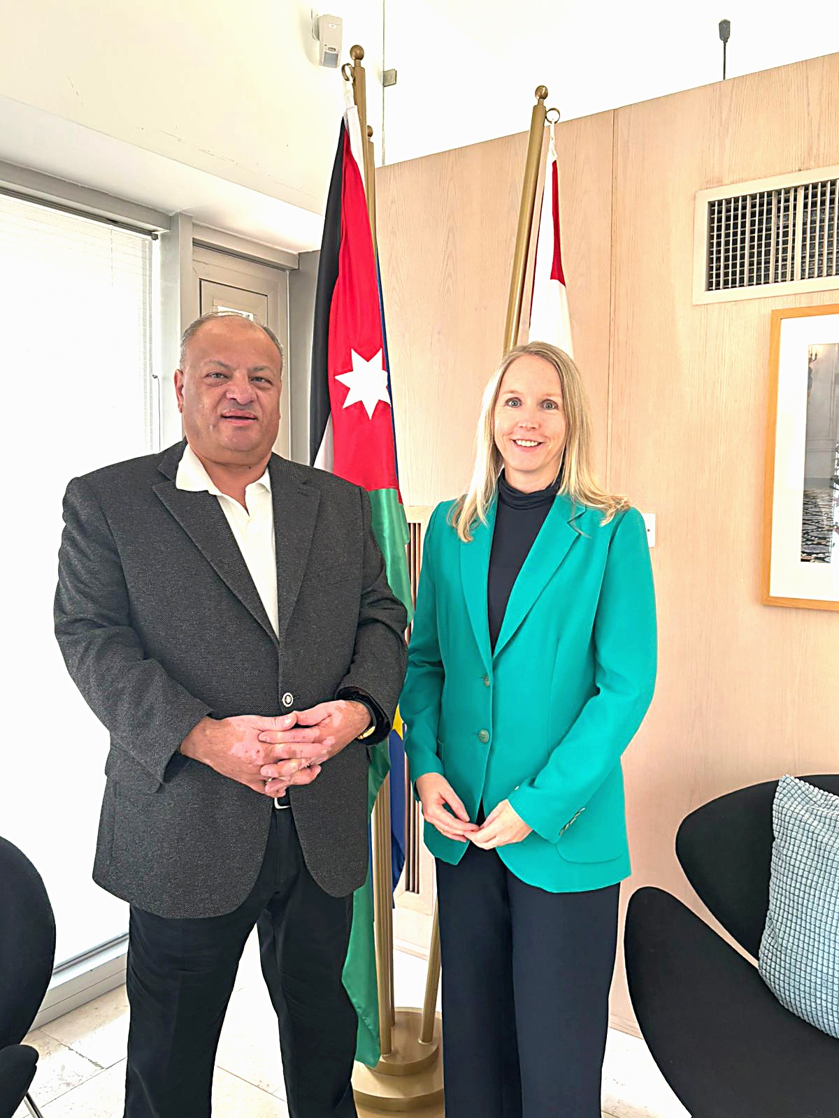 اَفاق نيوز – بحث المدير التنفيذي لمهرجان جرش للثقافة والفنون ايمن سماوي ، خلال لقائه السفيرة الهولندية لدى المملكة ستيلا كلوث،سبل تفعيل وتعميق التّعاون في الجانب الثقافي والفني ، ومشاركة مملكة هولندا ضمن فعاليات مهرجان جرش بدورته القادمة الـ 40 ، لكون العام 2026 سيشهد مرور 75 عاما على تأسيس العلاقات الدبلوماسية بين البلدين، كما يتزامن بذات العام مناسبة مرور 40 عاما على انطلاقة فعاليات مهرجان جرش للثقافة والفنون .