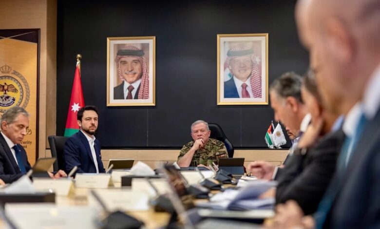 وشدد جلالته خلال ترؤسه اجتماعا في المركز الوطني للأمن وإدارة الأزمات، للوقوف على جاهزية المركز ومؤسسات الدولة للتعامل مع تبعات التطورات الإقليمية، الذي حضره سمو الأمير الحسين بن عبدﷲ الثاني ولي العهد، أهمية إعداد الخطط لضمان إمدادات كافية من احتياجات الطاقة والمواد الأولية، وضبط الأسواق لمنع التلاعب بالأسعار.