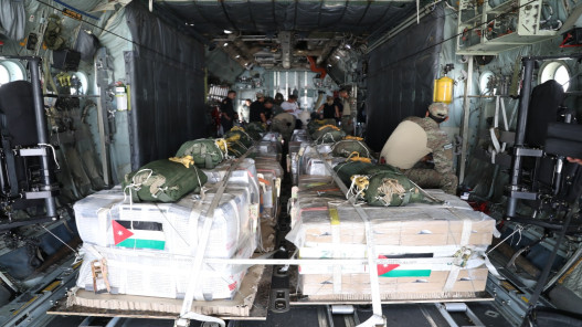 آفاق نيوز – نفذت القوات المسلحة الأردنية، الاربعاء، عملية إنزال جوي إلى قطاع غزة، حيث شارك في العملية بالإضافة إلى طائرات سلاح الجو الملكي الأردني، طائرات من جمهورية ألمانيا الاتحادية ودولة الإمارات العربية المتحدة ومملكة بلجيكا وجمهورية فرنسا وجمهورية إيطاليا، حملت على متنها نحو (79) طناً من المواد الغذائية والإغاثية داخل القطاع.