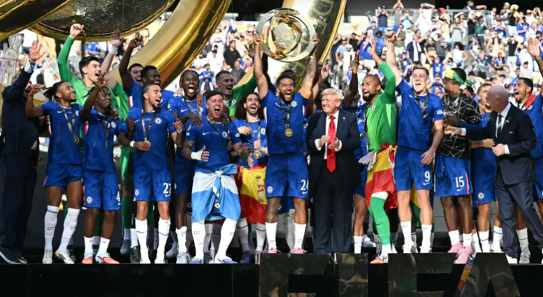 آفاق نيوز – توج الرئيس الأميركي دونالد ترامب، نادي تشيلسي الإنجليزي بكأس العالم للأندية 2025 بعد فوزه على باريس سان جيرمان الفرنسي يوم الأحد في المباراة النهائية.