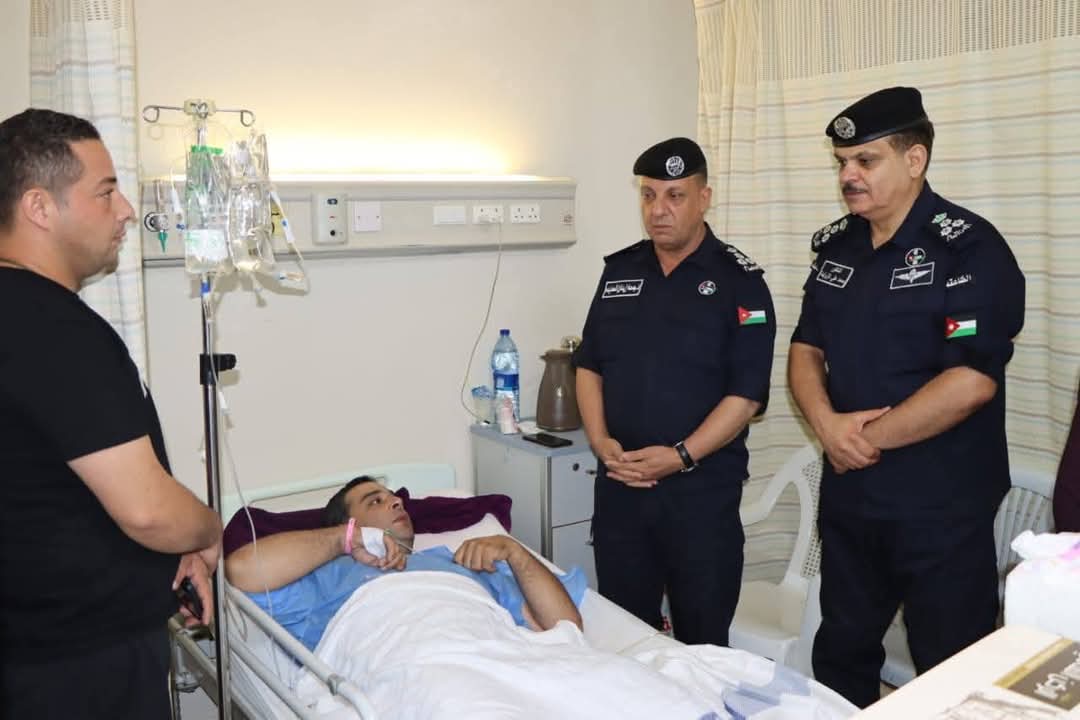 ونقل العميد الحمايدة، تحيات مدير الأمن العام اللواء الدكتور عبيدالله المعايطة، متمنياً لهم الشفاء العاجل.