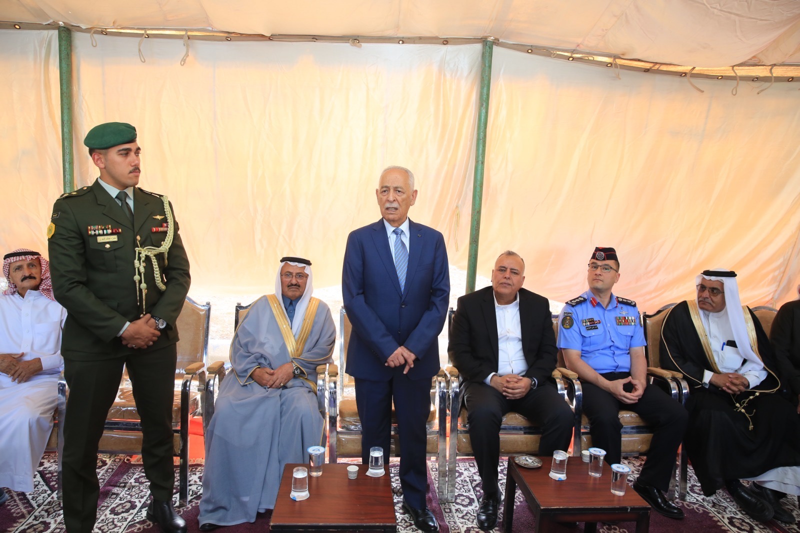 مندوبا عن جلالة الملك عبدالله الثاني، وسمو الأمير الحسين بن عبدالله الثاني، ولي العهد، قدم رئيس الديوان الملكي الهاشمي يوسف حسن العيسوي، اليوم الخميس، واجب العزاء إلى عشيرتي أبو جاموس وأبو هنية.