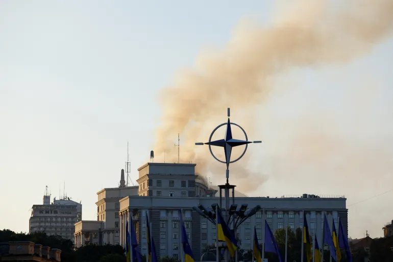 اَفاق نيوز – تبادلت روسيا وأوكرانيا هجمات بالصواريخ والطائرات المسيرة -الليلة الماضية- خلفت قتلى وجرحى وتسببت باندلاع حريق بمبنى الحكومة في كييف، كما أصابت منشأة بمحطة زاباروجيا النووية ومصفاة للنفط في كراسنودار.