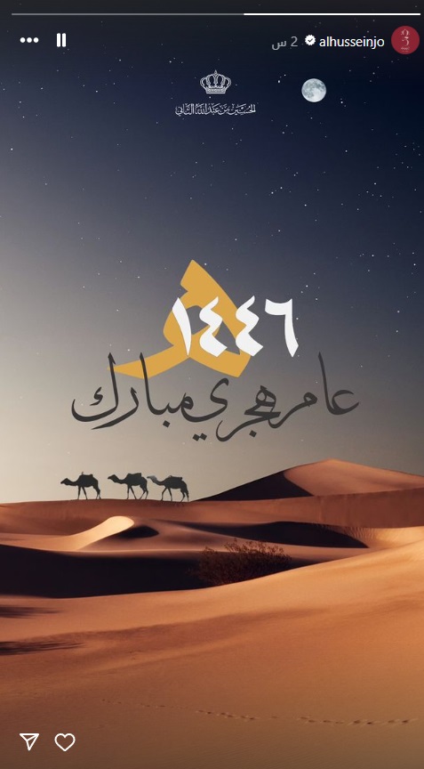 اَفاق نيوز –  هنأ سمو الأمير الحسين بن عبدالله الثاني، ولي العهد، اليوم السبت، بحلول رأس السنة الهجرية، من خلال نشره صورة “عام هجري مبارك 1446” عبر صفحته على الانستغرام.