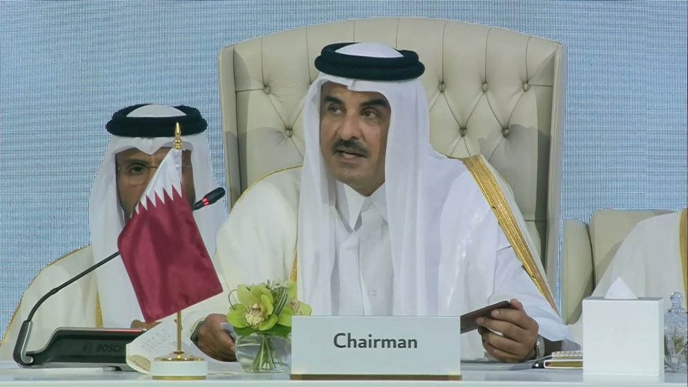 لقد تعرضت عاصمة بلدي الدوحة التي تنعقد فيها هذه القمة إلى اعتداء غادر استهدف خلاله أحد المساكن التي تقيم فيها عائلات القيادة السياسية لحركة حماس ووفدها المفاوض. وهذا في حي سكني يضم مدارس وبعثات دبلوماسية. وقد سقط جراء هذا العدوان ستة شهداء ومن ضمنهم مواطن قطري يخدم في قوات الأمن الداخلي، وأصيب ثمانية عشر شخصًا بجراح.